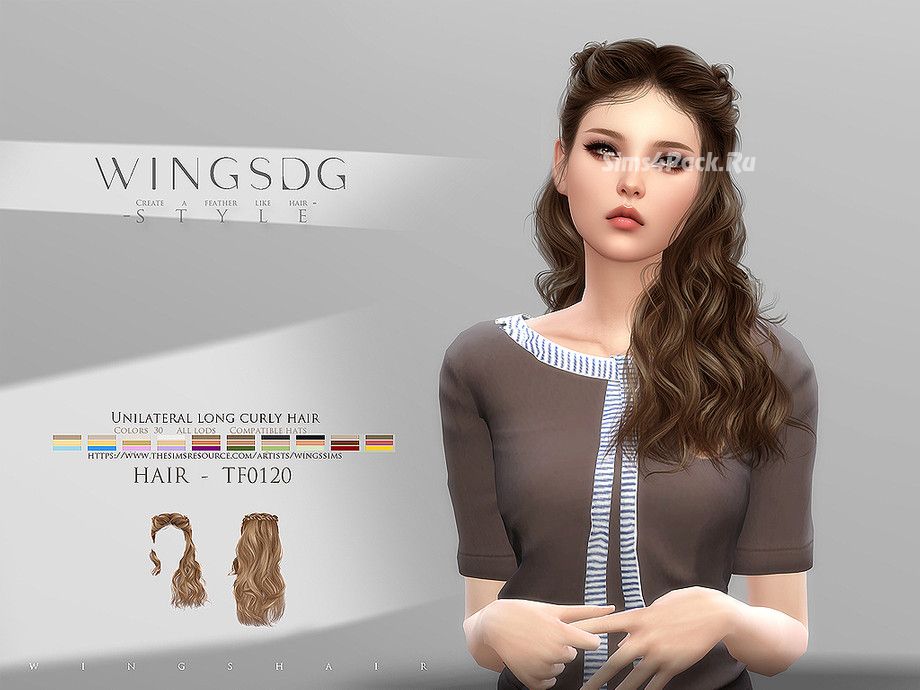 Прическа WINGS-TF0120-Unilateral long curly hair для Симс 4