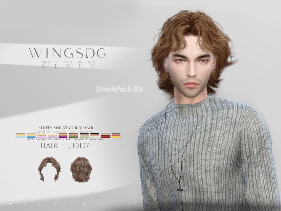 Прическа WINGS-TF0117-Fluffy short curly hair для Симс 4