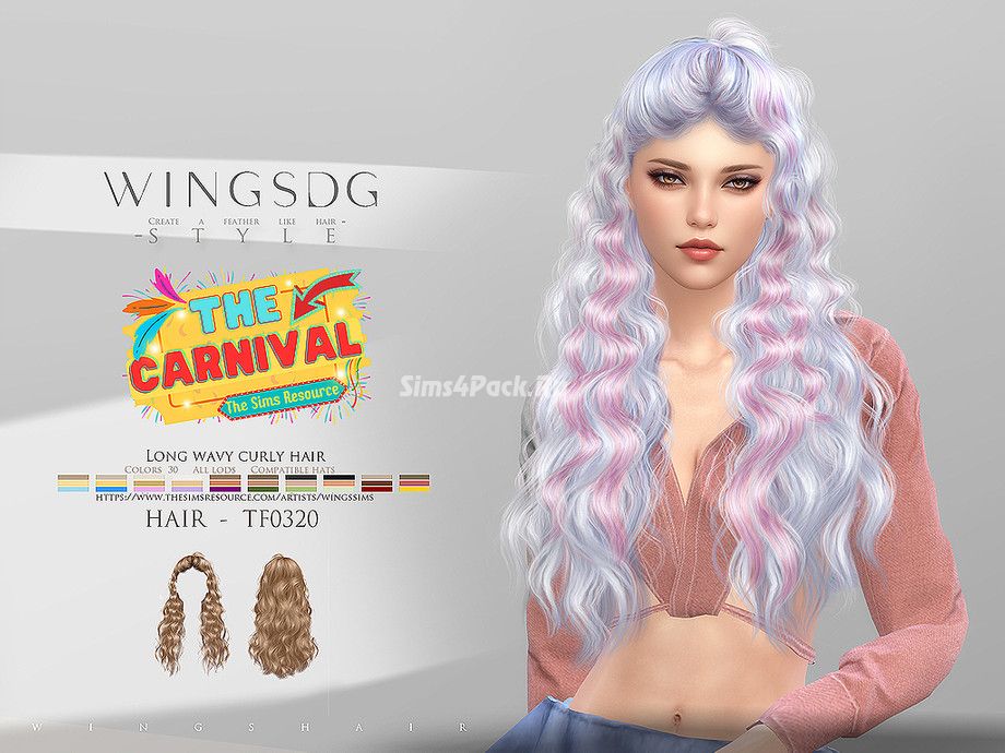 Прическа WINGS-TF0320-Long wavy curly hair для Симс 4