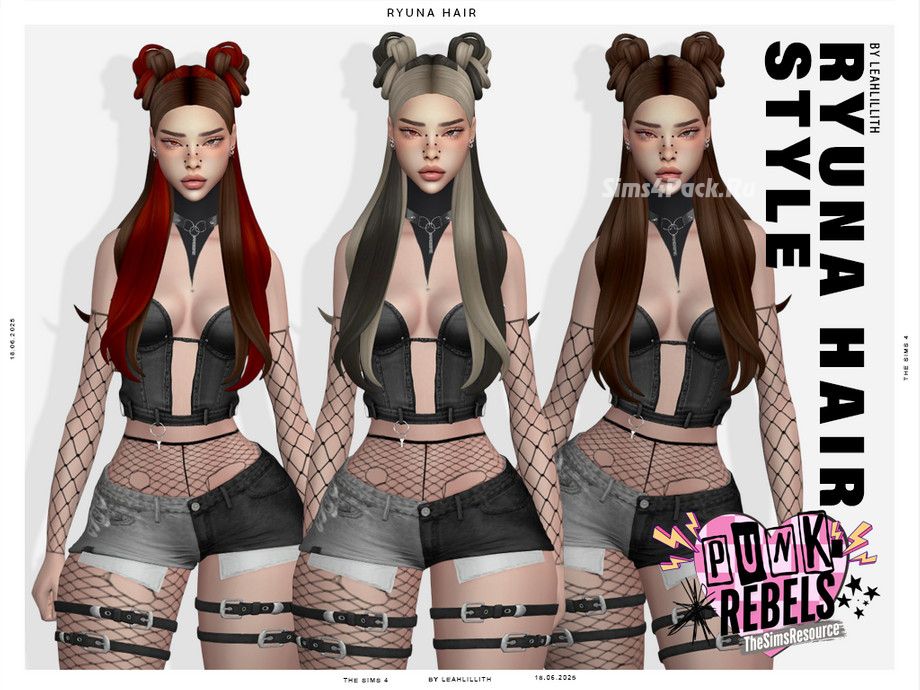 Женская прическа Punk Rebels Ryuna Hairstyle для Симс 4