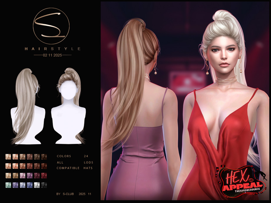 Женская прическа (HEX APPEAL)S-CLUB_021025_High Ponytail hairstyle для Симс 4