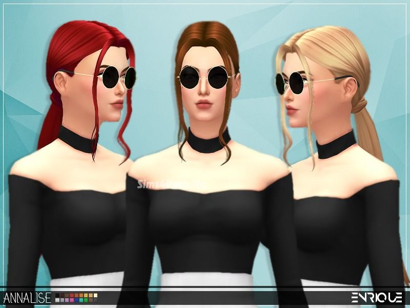 Низкий хвост в стиле Maxis Match с выпущенными передними прядками. 18 EA цветов. Прическа совместима с головными уборами.