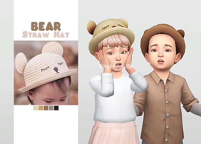 Милая соломенная шляпка-мишка в 5 цветовых вариантах.