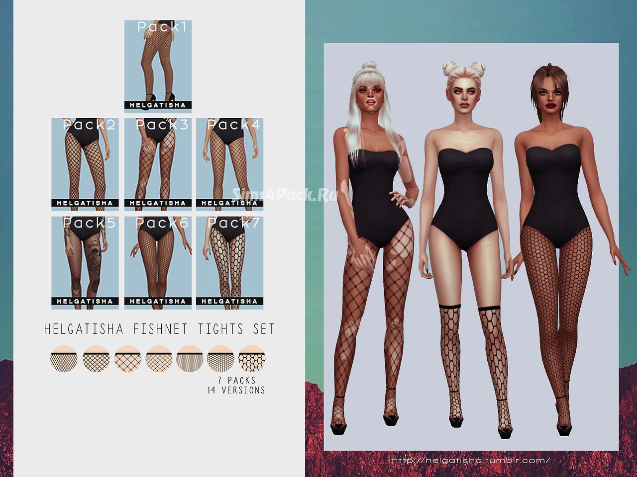 Колготки, чулки и носки Fishnet tights set для Симс 4