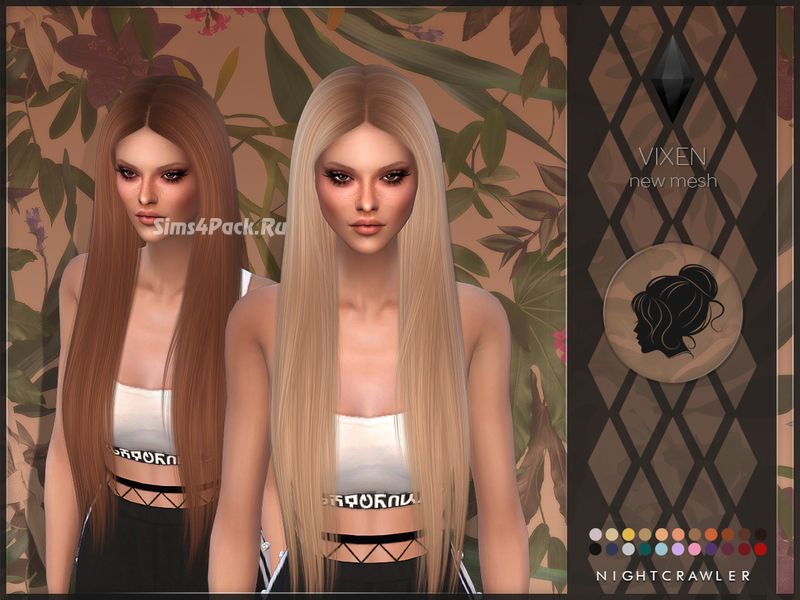 Длинные прямые волосы с пробором посередине в 22 цветовых вариантах. Прическа совместима с головными уборами.