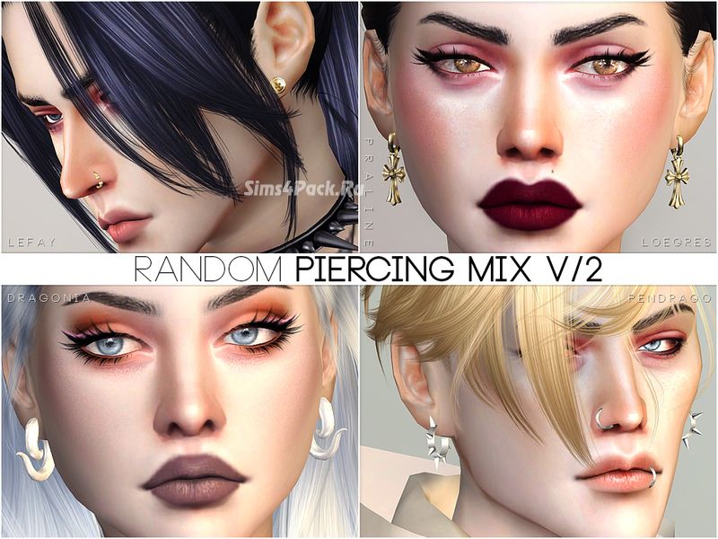 Набор серег Random Piercing Mix V/2 для Симс 4
