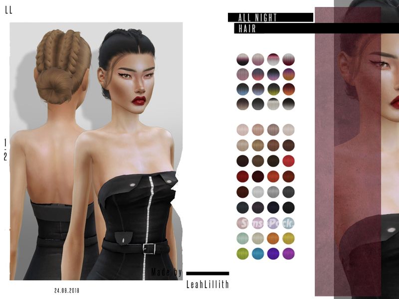 Прическа All Night Hair для Симс 4