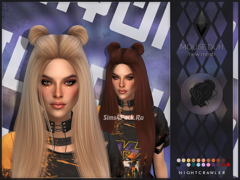 Длинные волосы с двумя булочками в 22 цветовых вариантах. Прическа частично совместима с головными уборами. Доступно для женщин.
