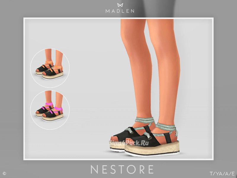 Черные сандалии на небольшой платформе с веревками вокруг щиколотки. 3 цветовых образца. Доступно для женщин.