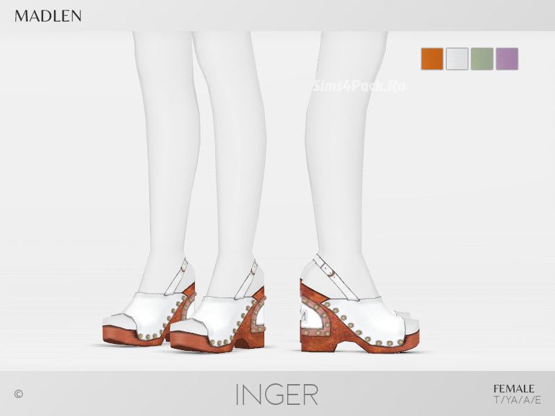 Сабо на деревянной танкетке с кожаной вставкой и заклепками. 4 цветовых решения. Доступно для женщин.