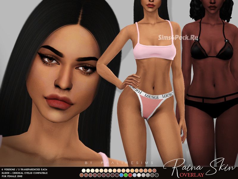 Женский overlay скинтон в 6 опциях. Работает со всеми EA тонами кожи, макияжем и особенностями кожи.