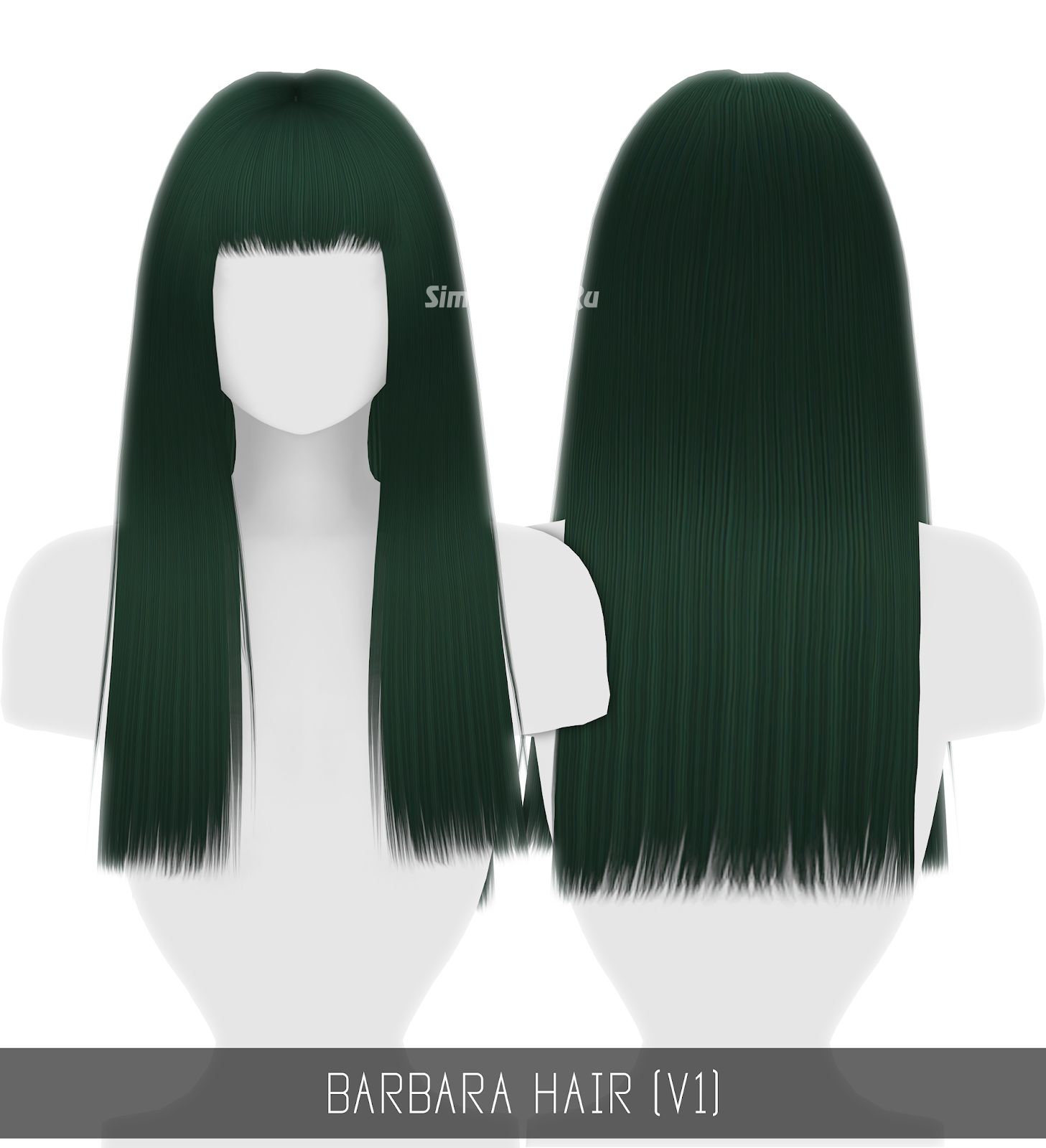 Длинные густые волосы с челкой и без (V1 и V2). 36 цветовых вариантов + 36 вариантов омбре (см. раздел Аксессуары). Прическа частично совместима с головными уборами. HQ текстура присутствует. Доступно для женщин.
