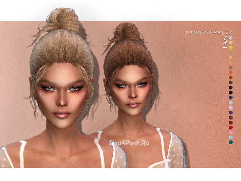 Высокий немного растрепанный пучок в 22 цветовых решениях. Прическа частично совместима с головными уборами. Доступно для женщин.