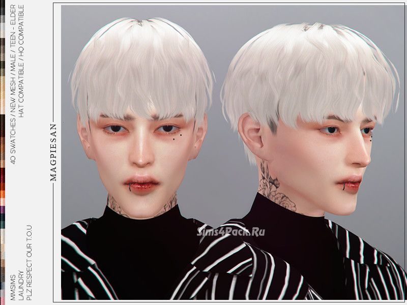 Немного волнистые волосы с челкой в 40 цветовых решениях. Прическа частично работает с головными уборами. Доступно для мужчин.