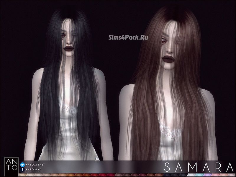 Жуткие длинные волосы для мужских и женских симов. 27 цветовых опций. Прическа частично работает с головными уборами.