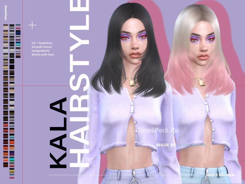 Прямые волосы средней длинны в 58 цветовых решениях. Прическа частично совместима с головными уборами. Доступно для женщин.