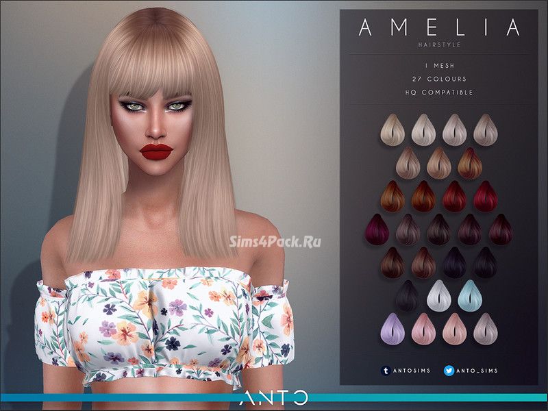 Женская прическа Amelia для Симс 4