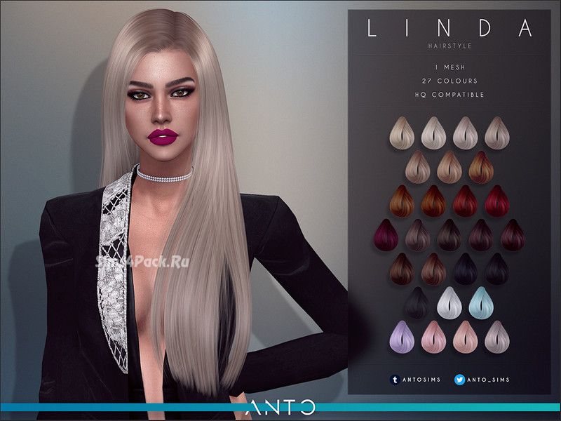 Длинные прямые волосы от Anto в 27 цветовых решениях. Прическа частично совместима с головными уборами. Доступно для женщин.