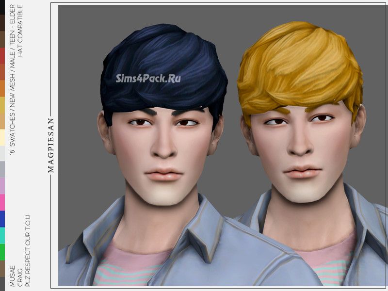 Мужская Maxis Match укладка с густой челкой. 18 цветовых решений. Частично совместима с головными уборами.