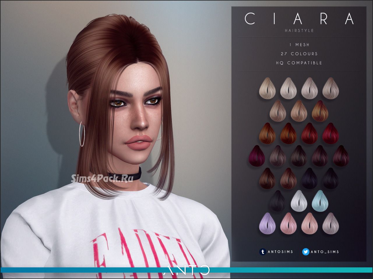 Женская прическа Ciara для Симс 4