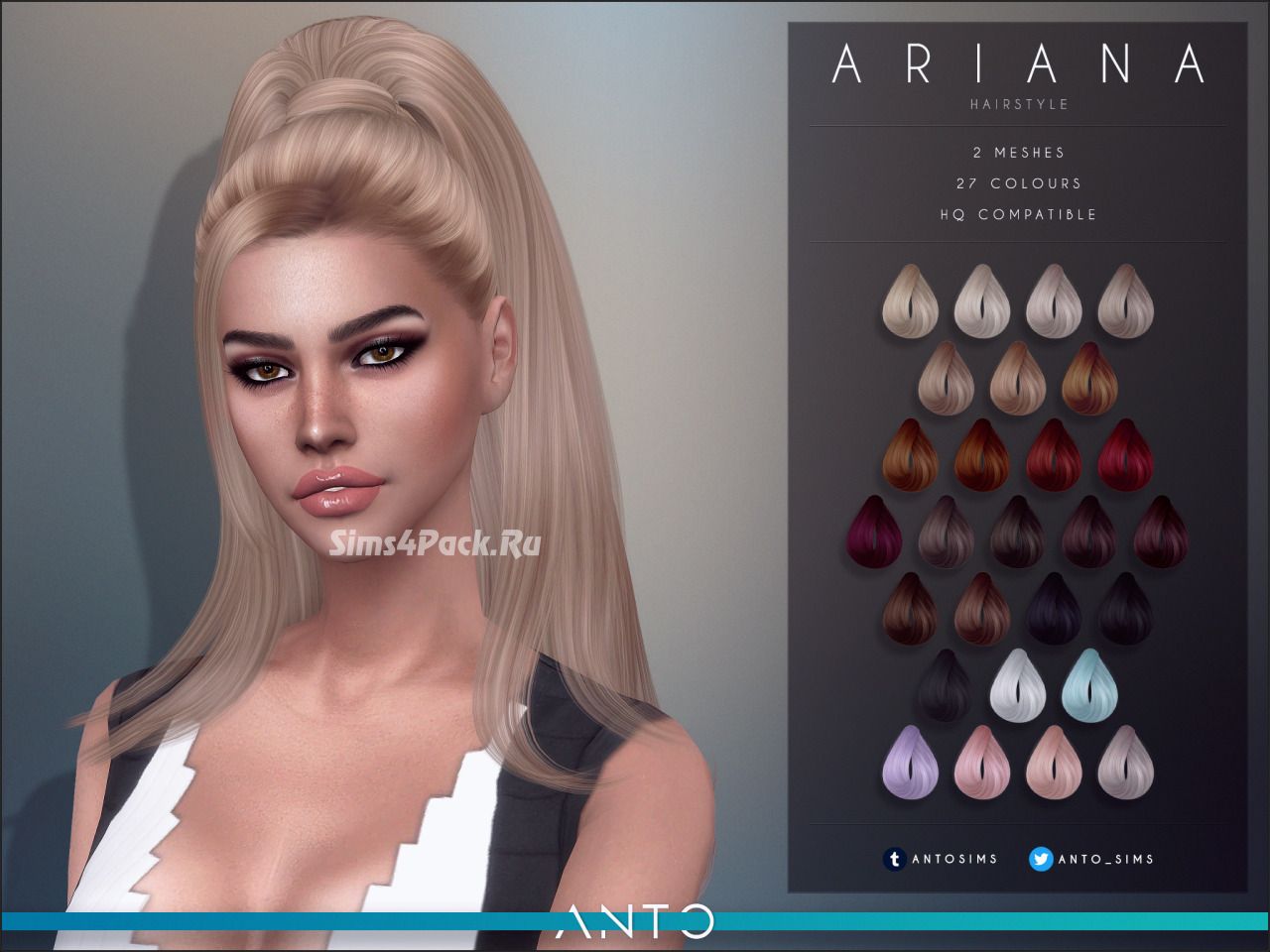 На создание этой прически автора вдохновил образ Ariana Grande. 2 версии и 27 цветовых образцов. Частично совместима с головными уборами. Доступно для женщин.