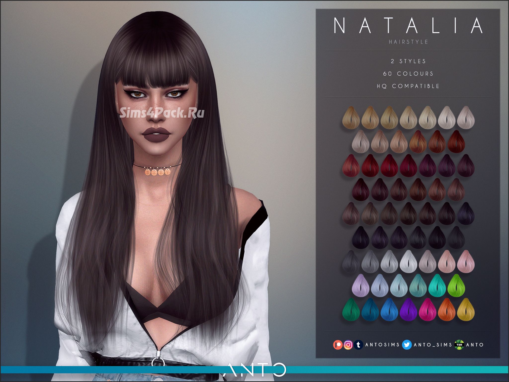 Длинные прямые волосы от Anto в 2 версиях (с челкой и без) и в 60 цветовых решениях. Прическа частично совместима с головными уборами. HQ. Доступно для женщин.