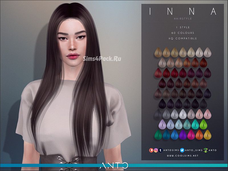 Длинные прямые волосы с пробором посередине в 60 цветовых вариантах. Прическа частично совместима с головными уборами. HQ. Доступно для женщин.