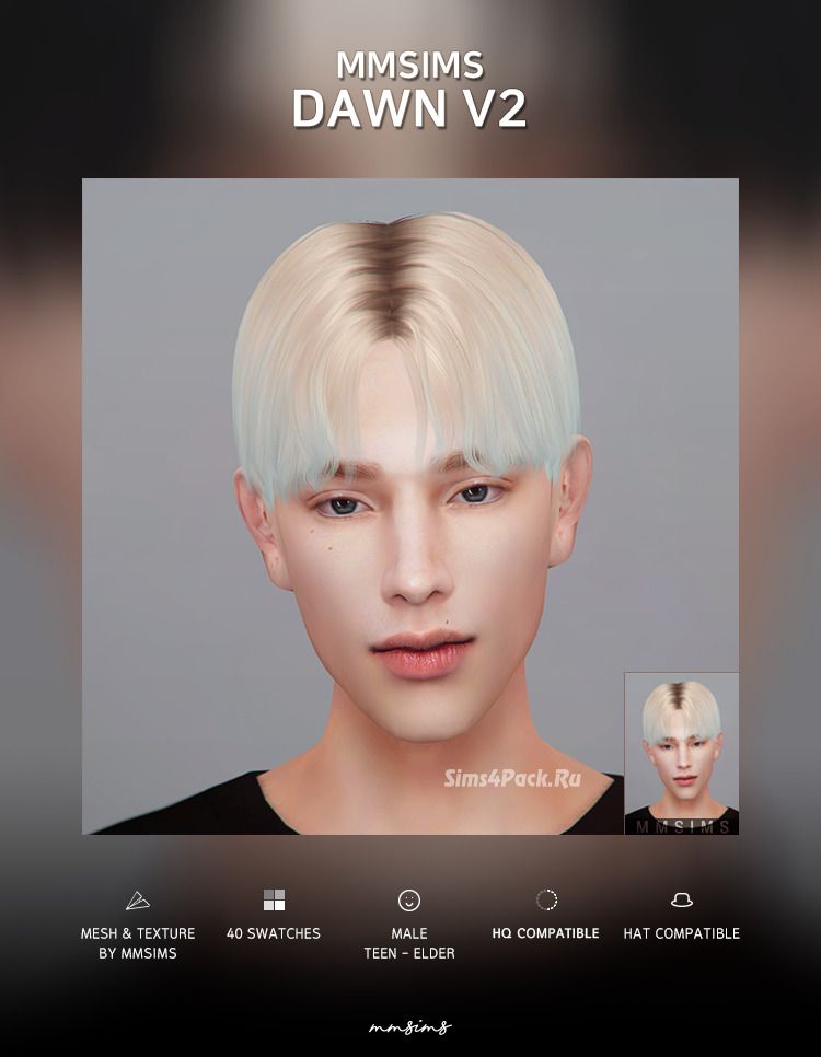 Мужская прическа Hair Dawn v2 Remake для Симс 4