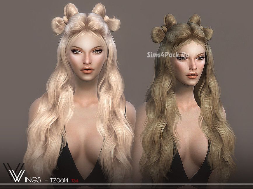 Красивые длинные волнистые волосы с двумя пучками-бантиками. 20 цветовых решений. Прическа частично совместима с головными уборами. Доступно для женщин.