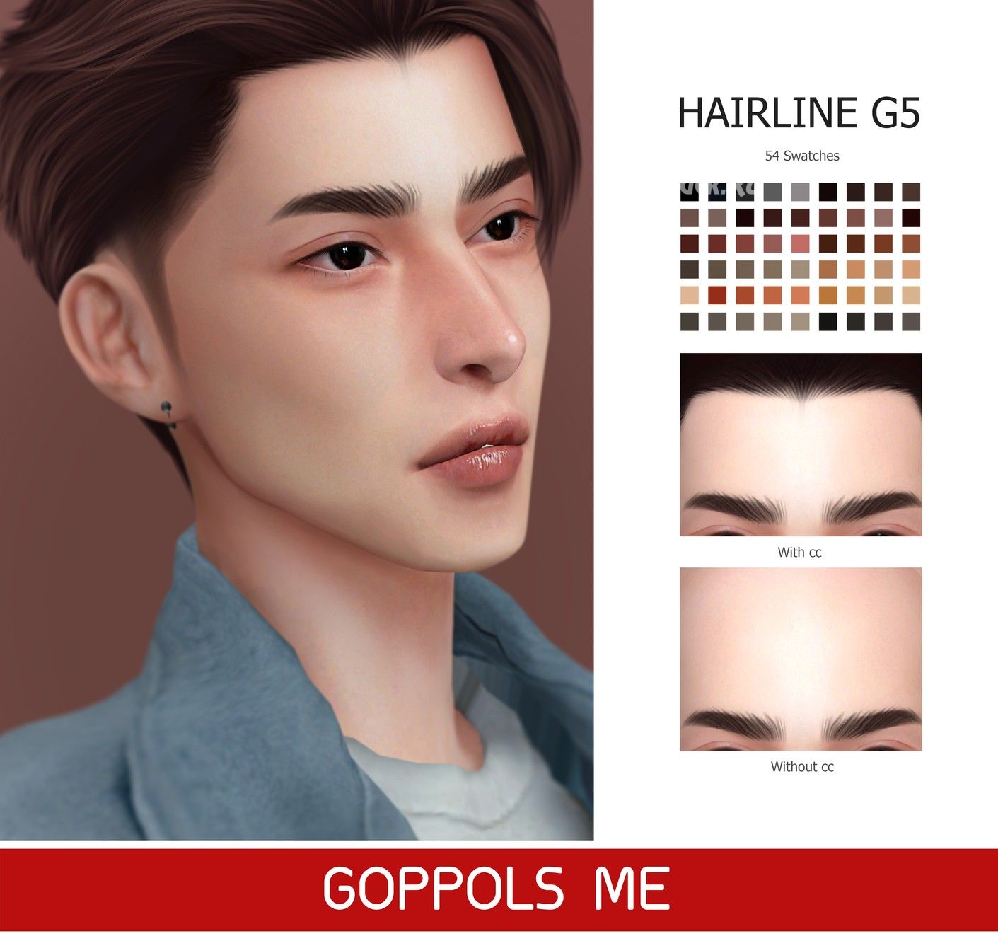 Реалистичная дополнительная линия волос в 54 цветовых вариантах. Расположение материала → раздел Особенности кожи. Доступно для мужчин и женщин.