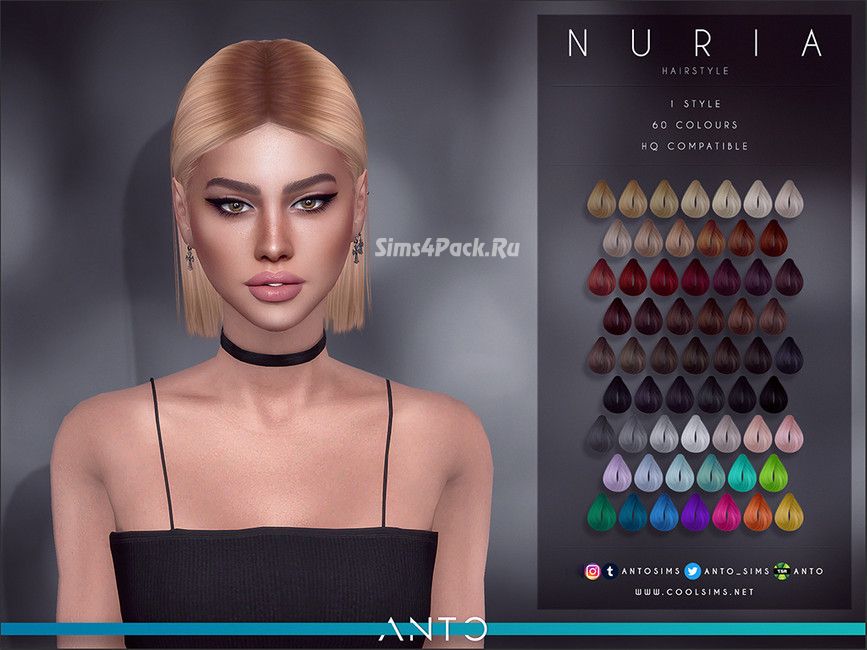 Женская прическа Nuria для Симс 4
