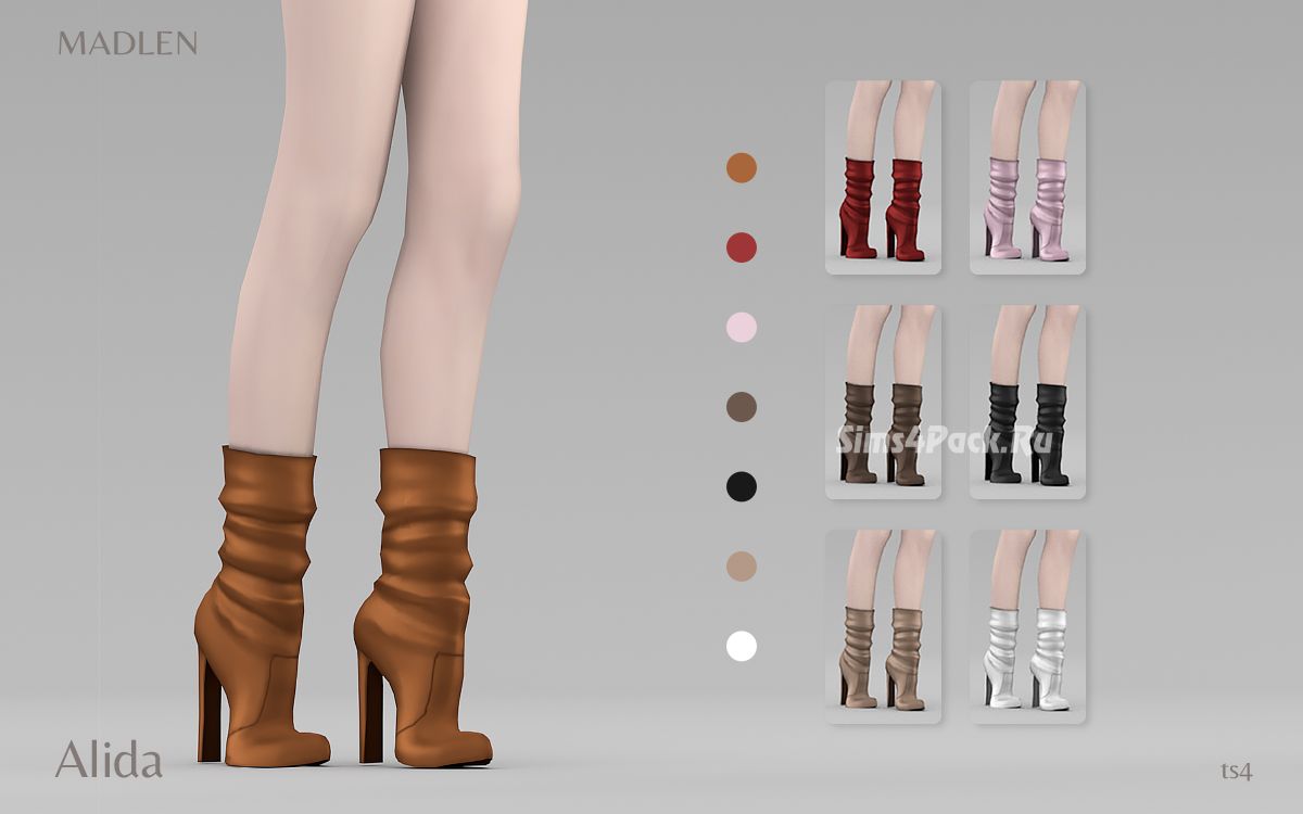 Сапожки с интересной драпировкой на высоком каблуке. 7 цветовых решений. Доступно для женщин.