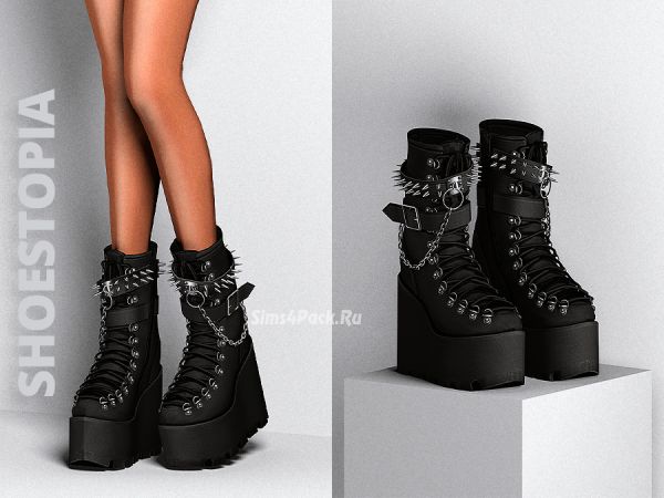 Крутейшие готические боты на платформе с цепями и шипами в 1 цветовом варианте. Для корректной работы допа НЕОБХОДИМ слайдер-мод для высоких каблуков CAS Feet Up Boots Heels Slider 01 (ссылка под описанием в поле Mesh). Доступно для женщин.