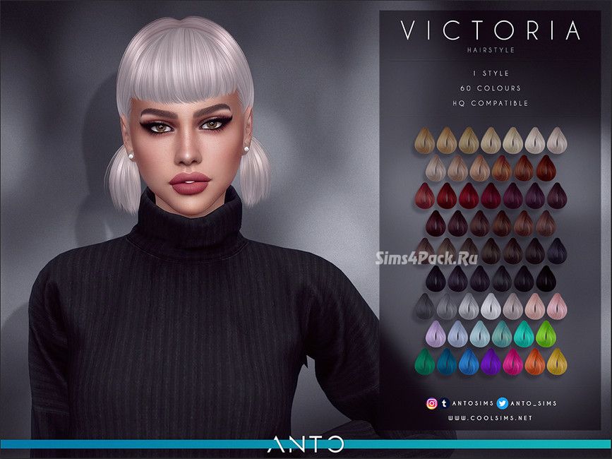 Два коротеньких низких хвостика + полукруглая челка в 60 цветовых вариантах. Прическа частично работает с головными уборами. HQ совместима. Доступно для женщин.