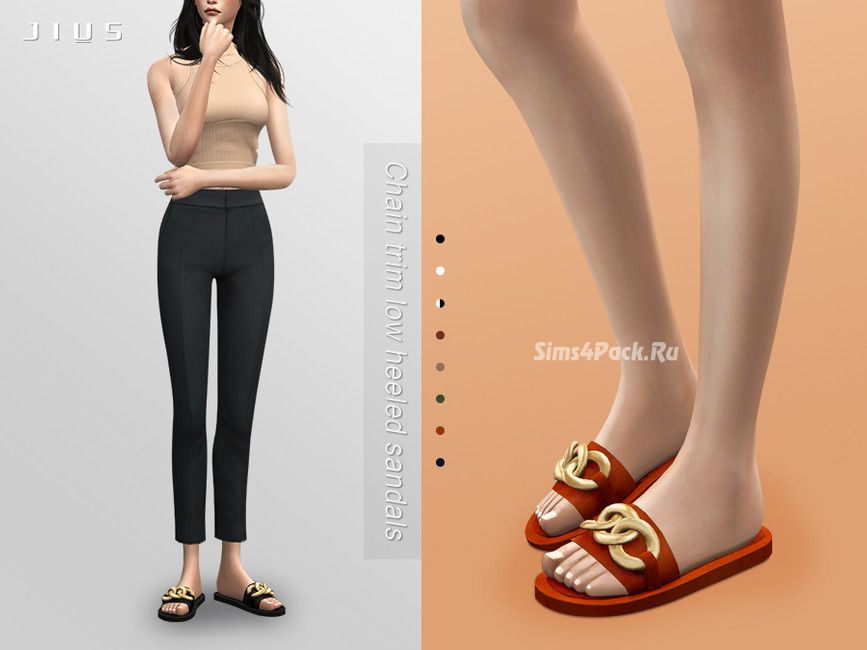 Шлепанцы Chain trim low heeled sandals 01 для Симс 4