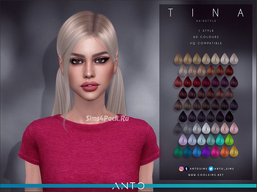 Два низких симпатичных хвостика + выпущенная спереди прядка в 60 цветовых вариантах. Прическа частично работает с головными уборами. HQ совместима. Доступно для женщин.