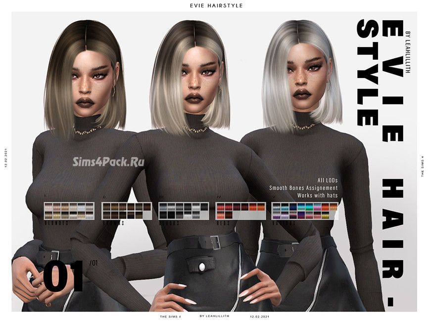 Женская прическа Evie Hairstyle для Симс 4