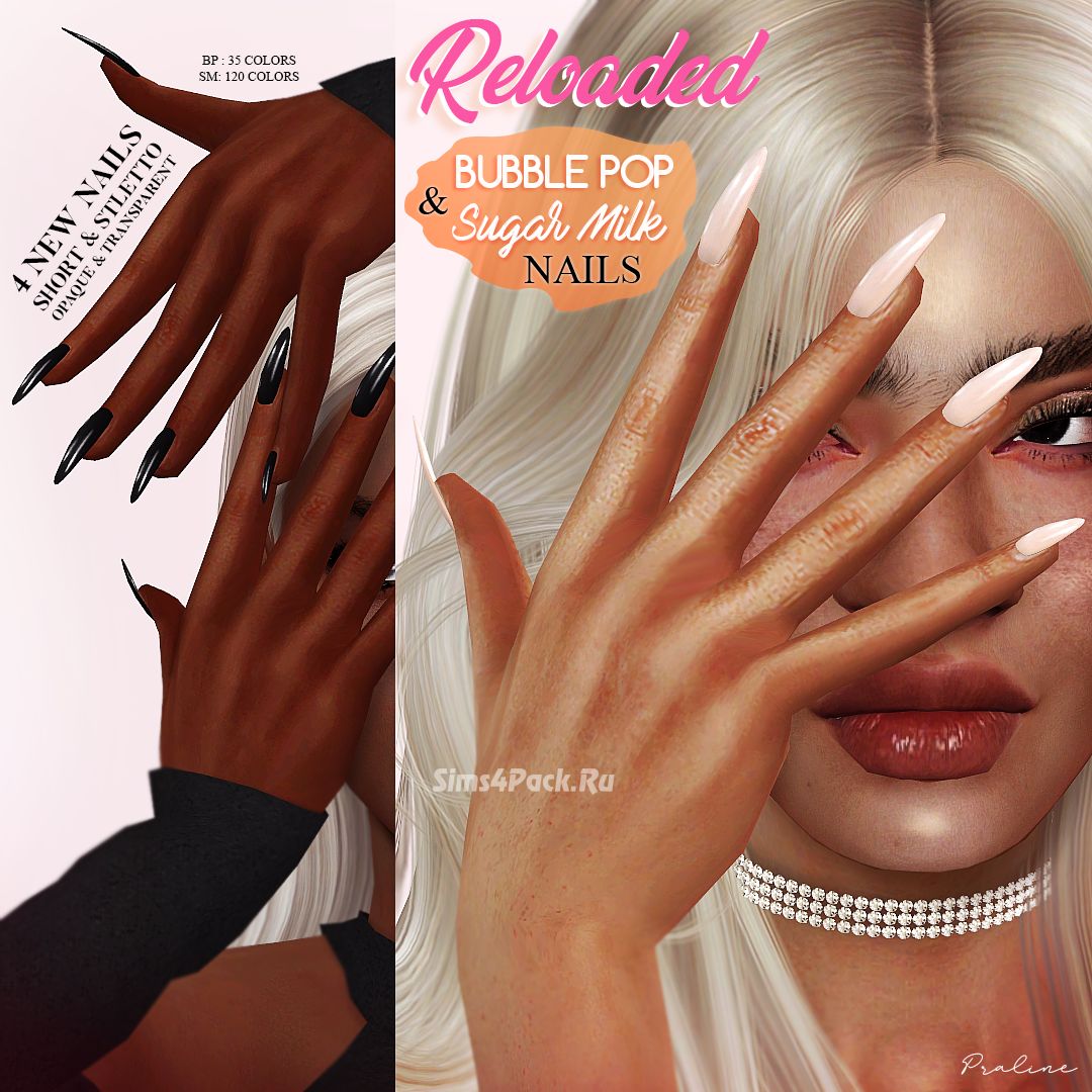 Маникюр BUBBLE POP AND SUGAR MILK Nails RELOADED для Симс 4