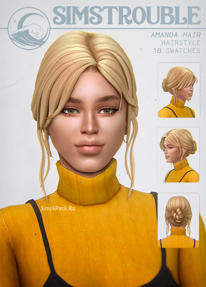 Maxis Match прическа с плетеным пучком и выпущенными спереди прядками. 18 EA цветовых образцов. Частично совместима с головными уборами. Доступно для женщин.