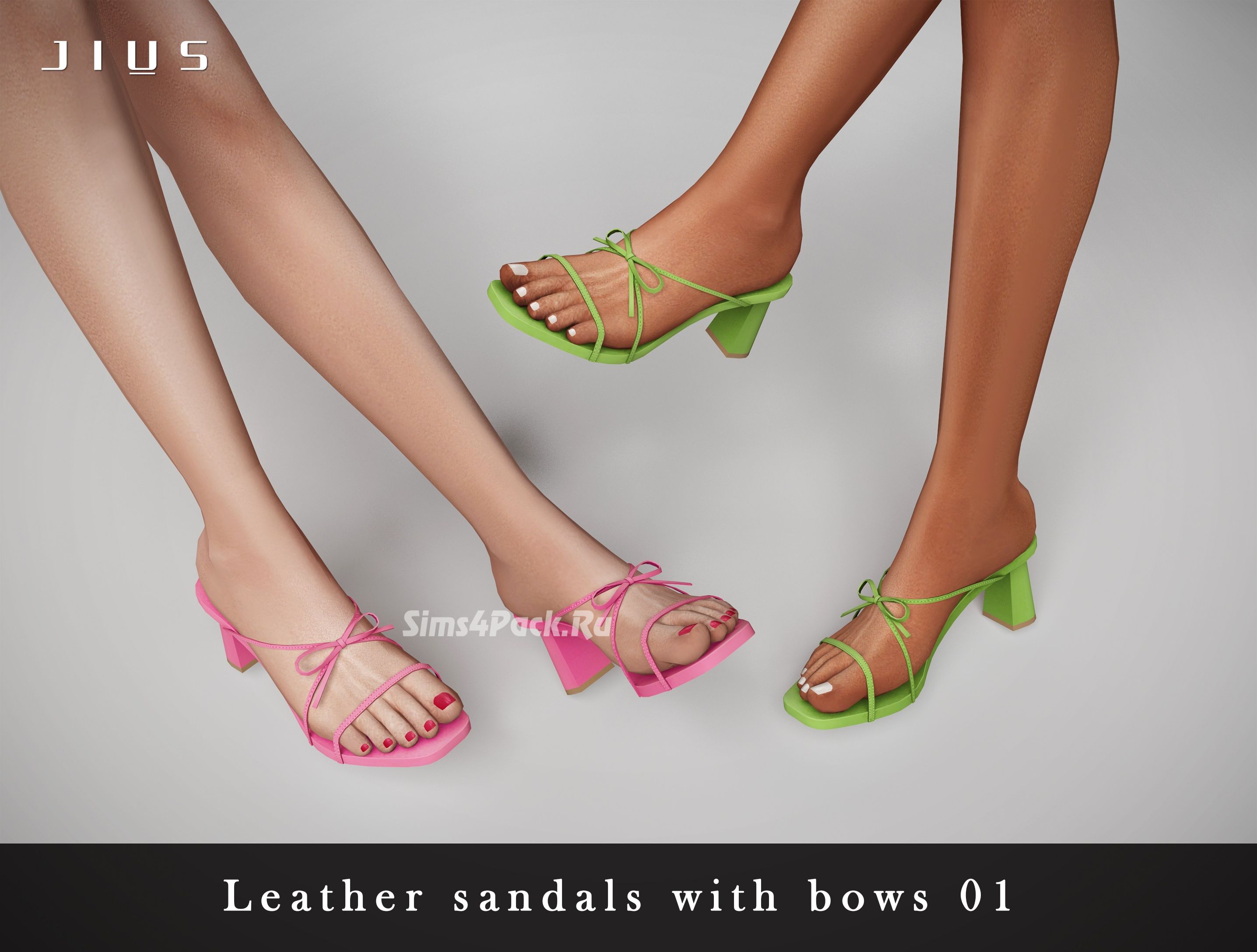Женские сандалии Leather sandals with bows 01 для Симс 4