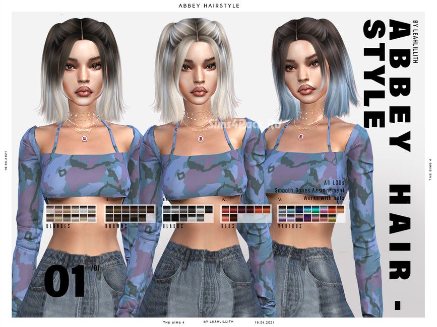 Женская прическа Abbey Hairstyle для Симс 4