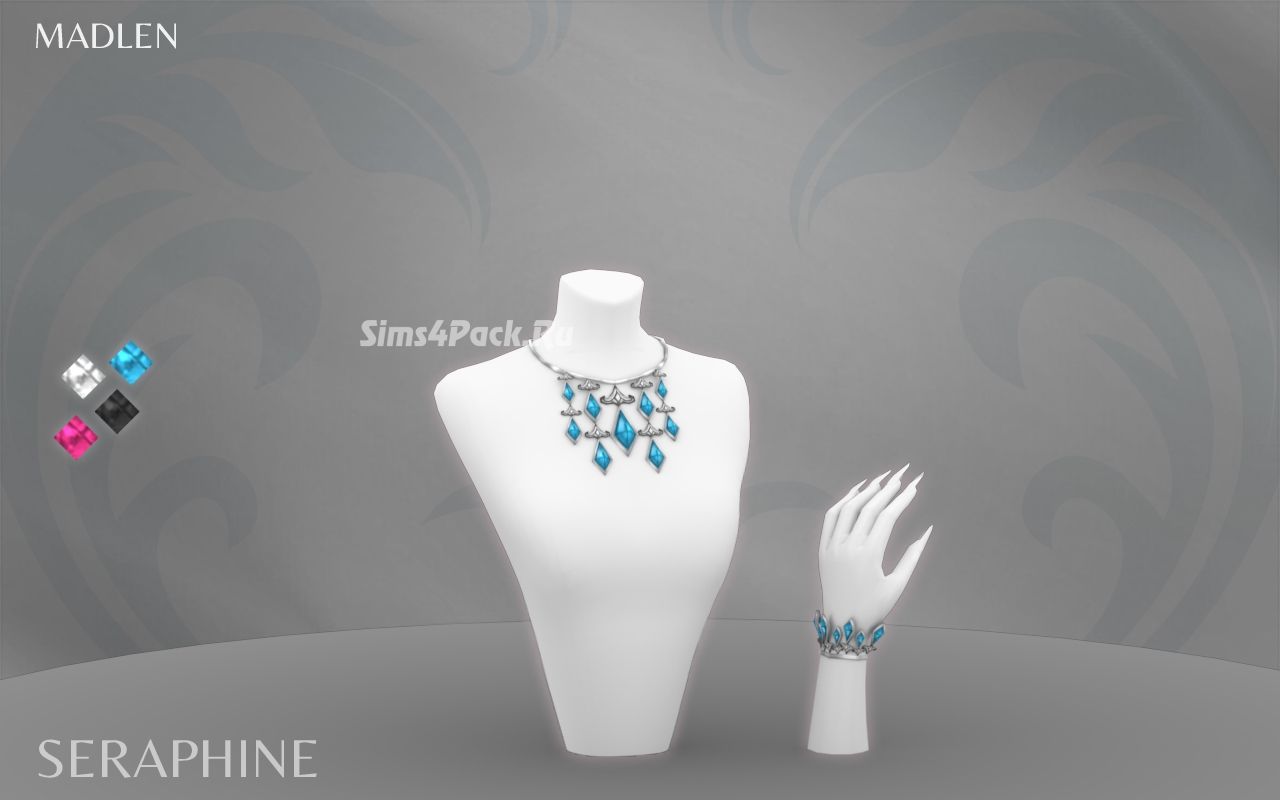 Хрустальное колье и браслет в тон. Изготовлен из серебра и различных драгоценных камней. 4 цветовых образца. Доступно для женщин.