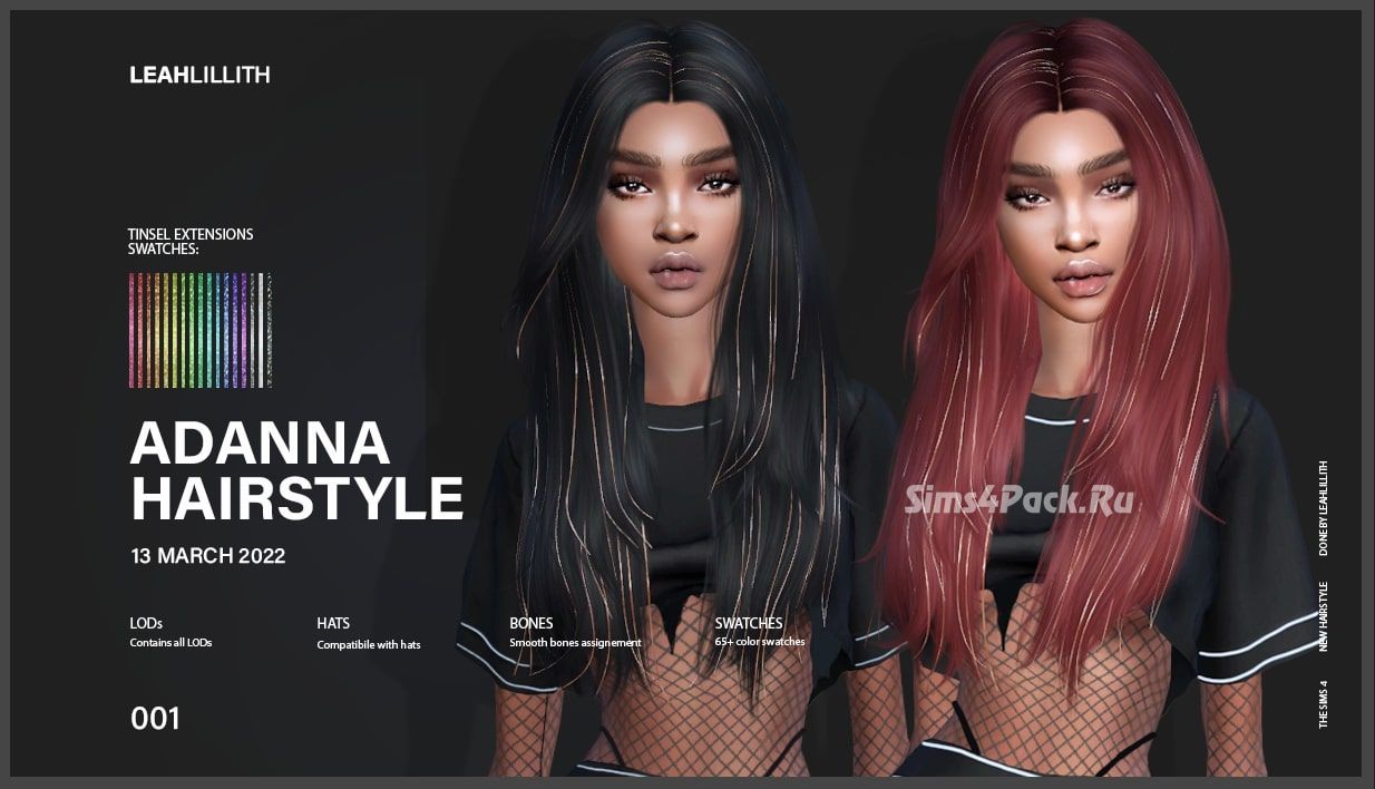 Женская прическа Adanna Hairstyle and Tinsel Extensions для Симс 4