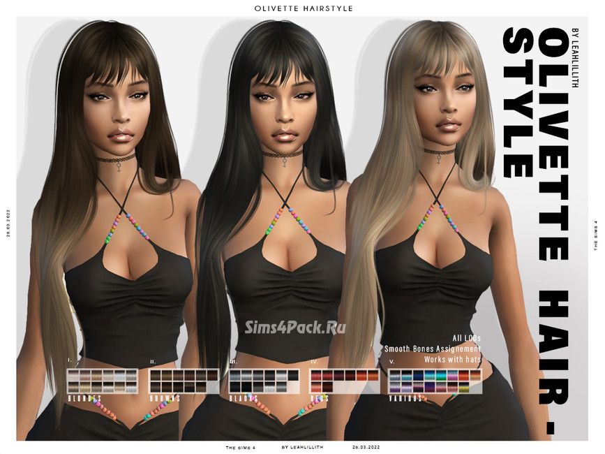 Женская прическа Olivette Hairstyle для Симс 4