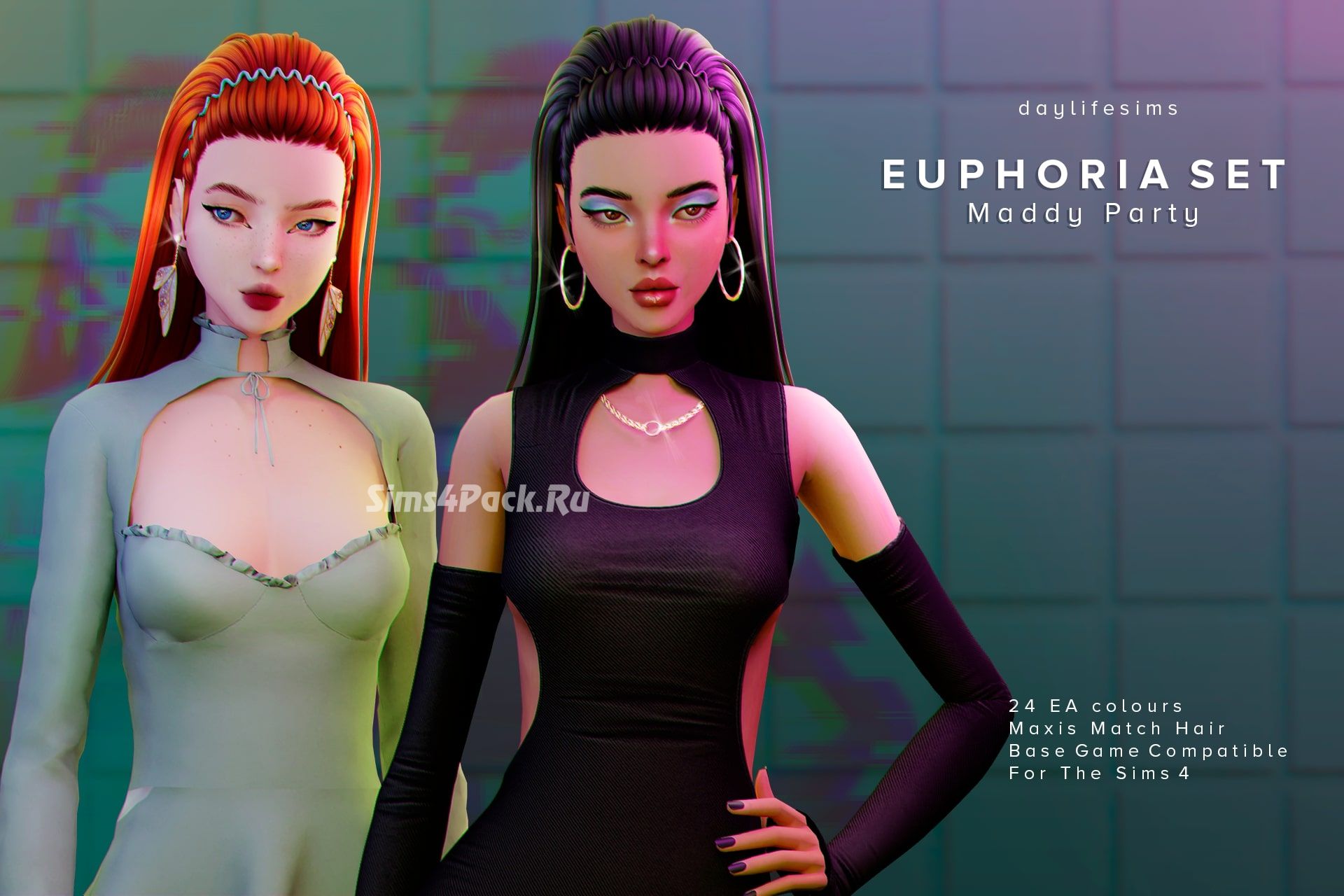 Женская прическа EUPHORIA SET - Maddy Party для Симс 4