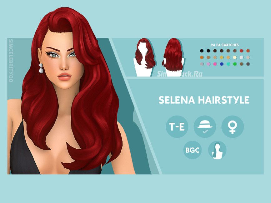 Женская прическа Selena Hairstyle для Симс 4