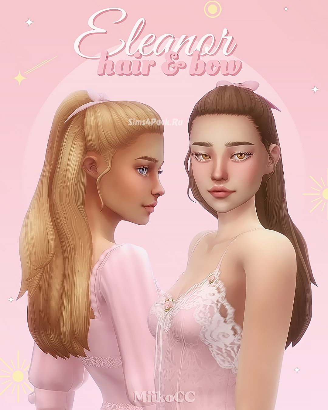 Женская прическа Eleanor hair and bow для Симс 4