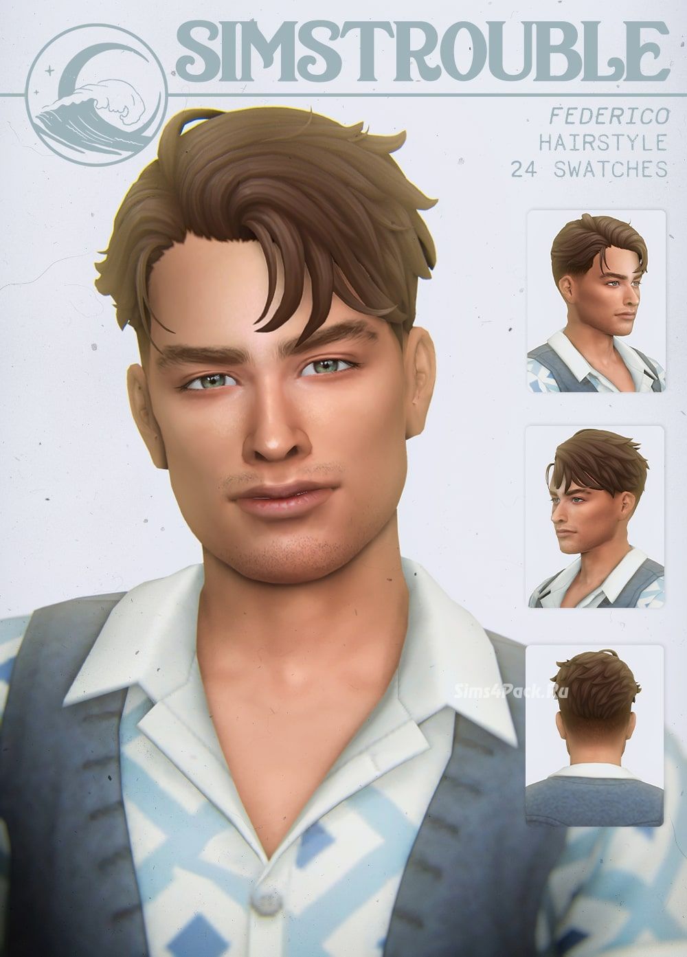 Немного отредактированная сетка прически из дополнения The Sims 4: Старшая школа. 24 EA цветовых образца. Частично совместима с головными уборами. Доступна для мужчин.