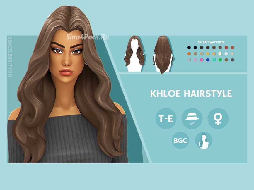 Женская прическа Khloe Hairstyle для Симс 4