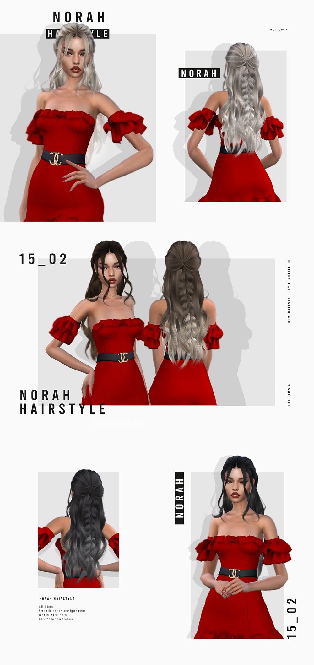 Женская прическа Norah Hairstyle для Симс 4